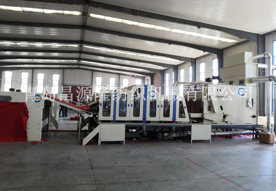3. CYLMX-振動給棉機:將開鬆纖維進一步鬆混合,並處理成均勻的筵棉供下道工序。容積式定量喂入,光電控製、調節方便、給棉量準確均勻。