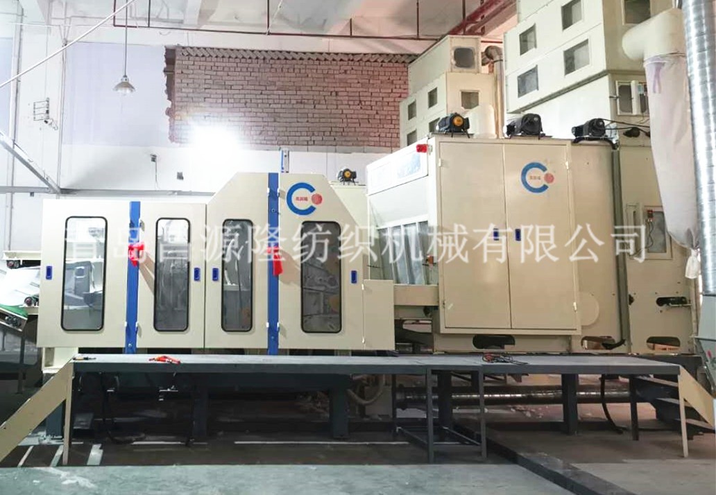 3. CYLMX-1850振動給棉機:將開鬆纖維進一步鬆混合,並處理成均勻的筵棉供下道工序。容積式定量喂入,光電控製、調節方便、給棉量準確均勻。