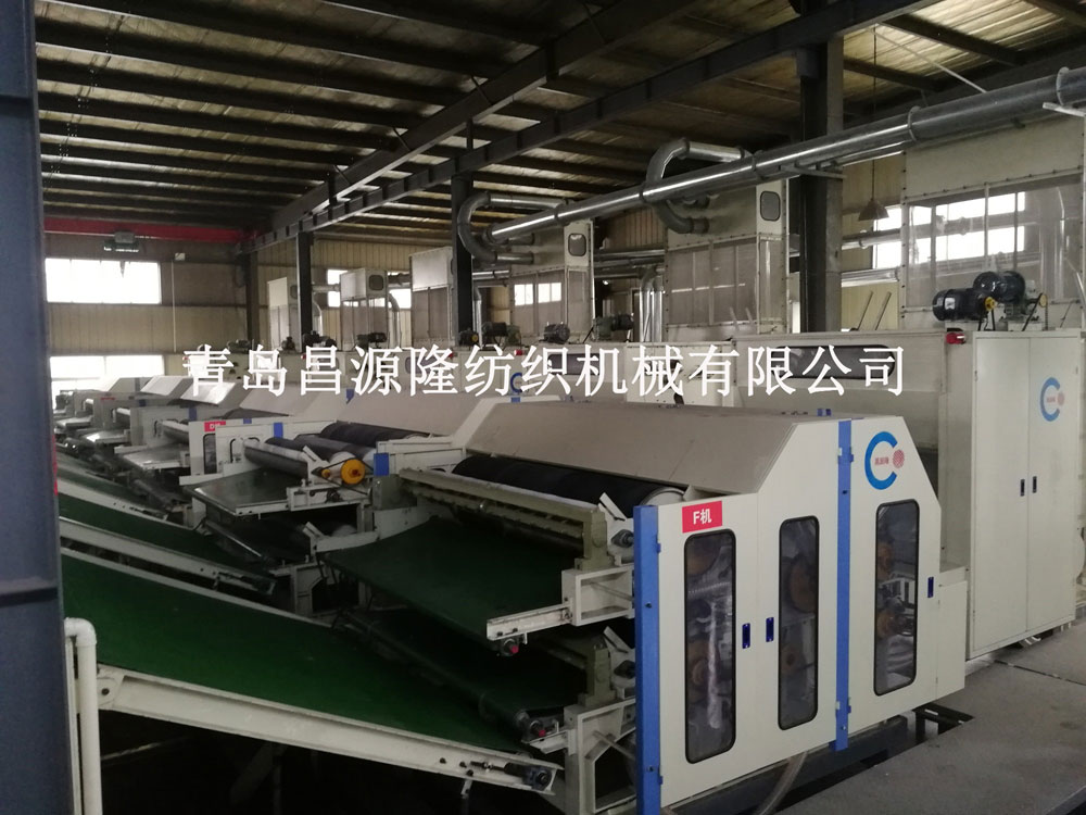 工藝流程:混料機→預開鬆→精開鬆→氣流成網機→針刺機→噴膠烘房→橫向分切機→壓板機→切邊裁床機。生產線用途:填充料生產線,適用於床上用品、服裝家具、沙發高級填充料等。