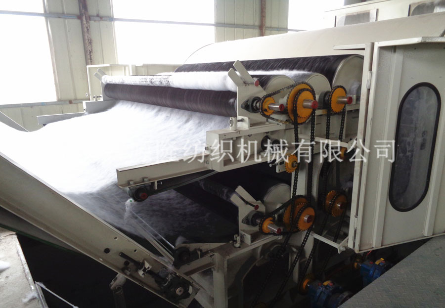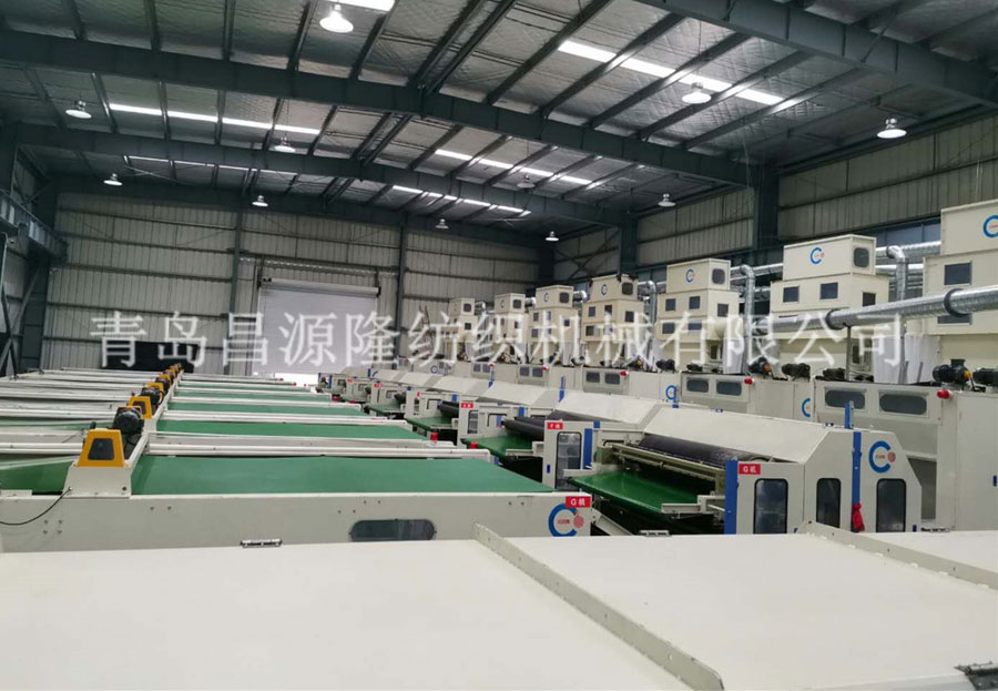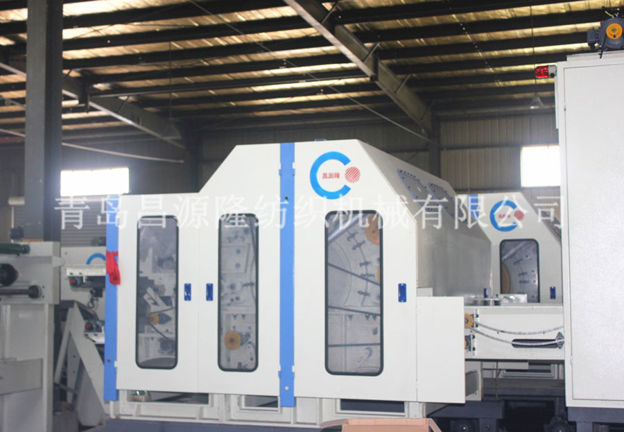 3. CYLMX-1850振動給棉機:將開鬆纖維進一步鬆混合,並處理成均勻的筵棉供下道工序。容積式定量喂入,光電控製、調節方便、給棉量準確均勻。