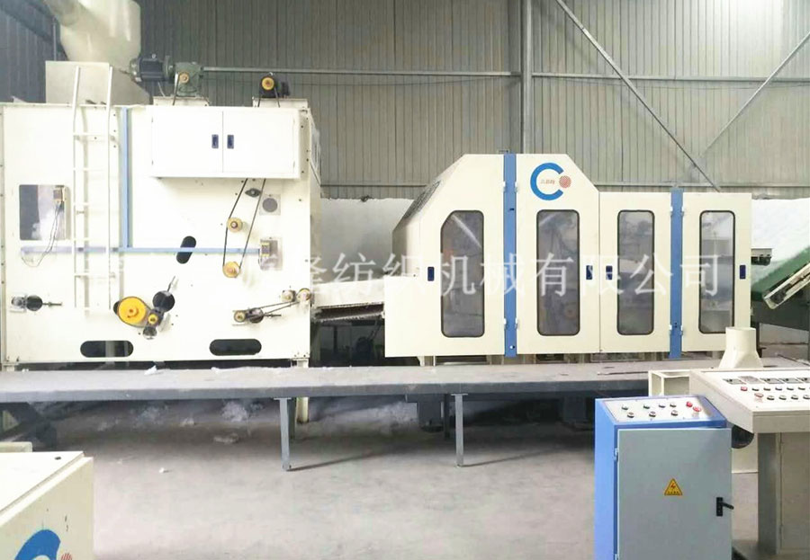 3. CYLMX-1850振動給棉機:將開鬆纖維進一步鬆混合,並處理成均勻的筵棉供下道工序。容積式定量喂入,光電控製、調節方便、給棉量準確均勻。