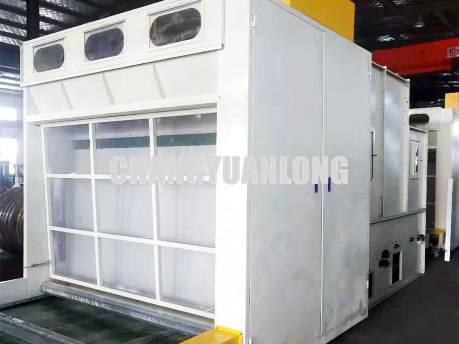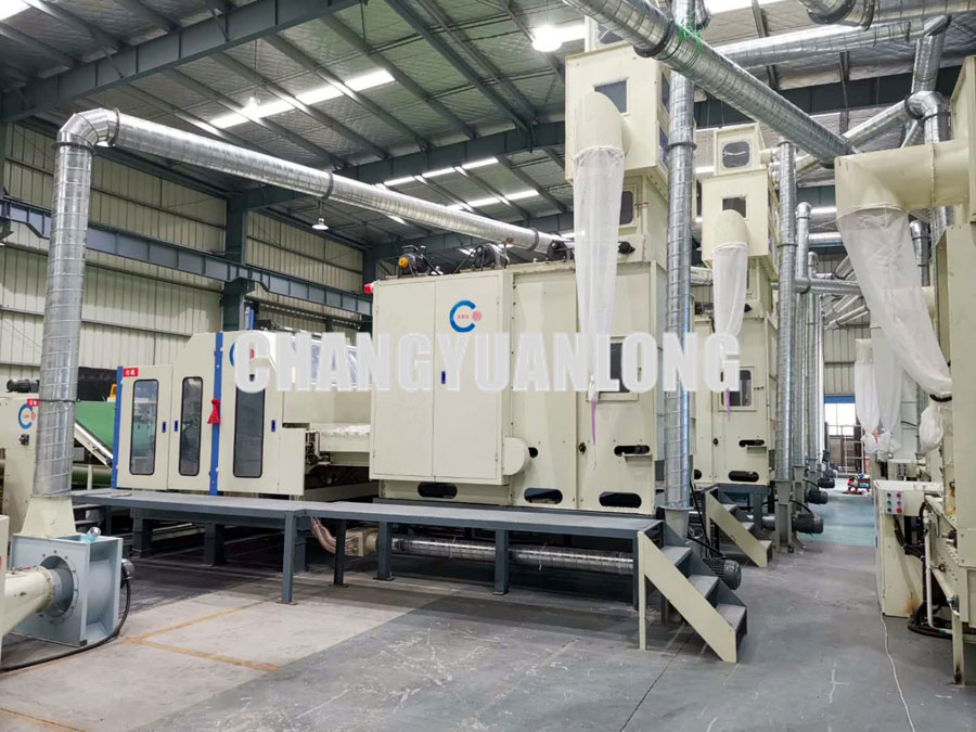 (2)纖維經排氣箱進入儲棉箱,光電開關控製儲棉量,由角釘簾(內襯布簾)帶入輸棉道。