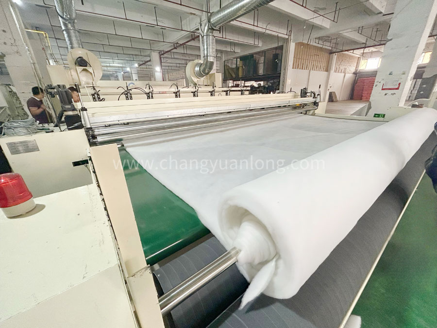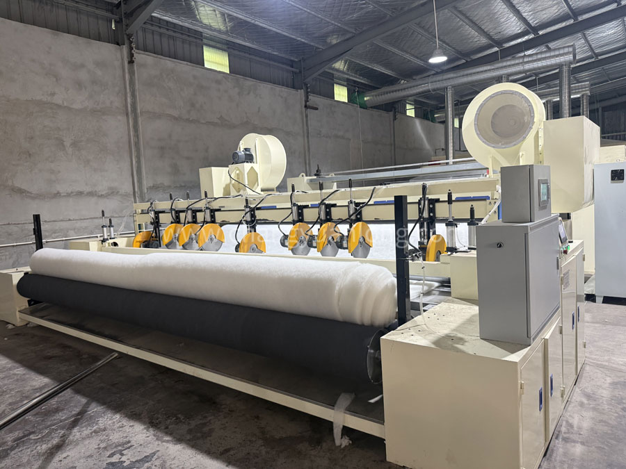 采用變頻器控製調速當棉層達到一定的規格長度時,數碼記數收卷,電熱絲自動切斷。