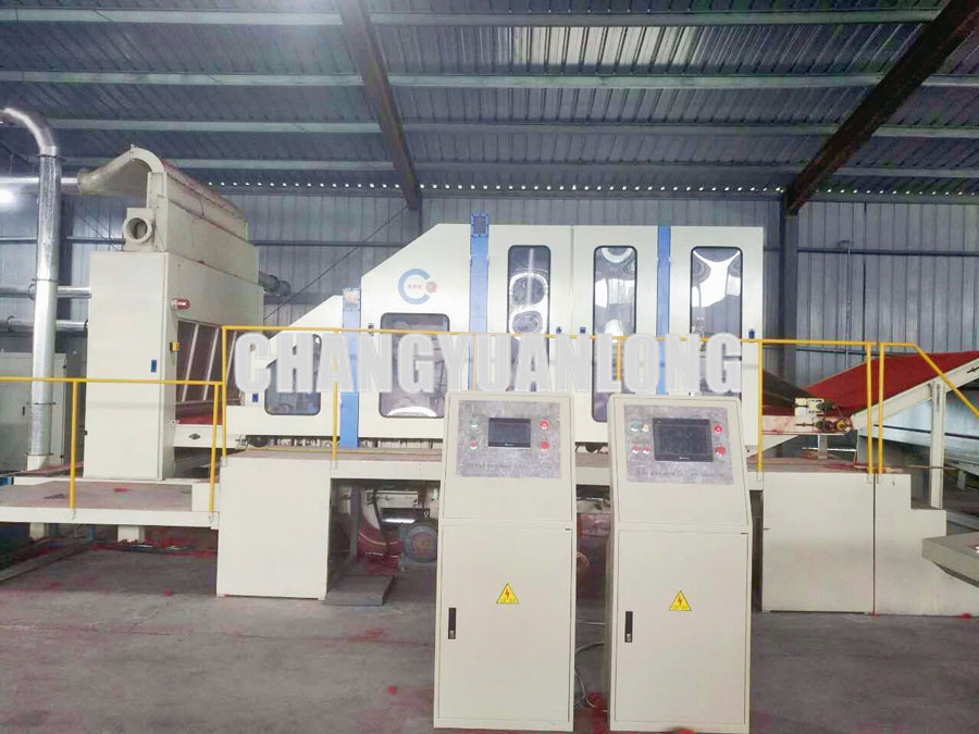 該機為雙錫林、雙道夫、四雜亂、羅luo拉la剝bo取qu,所suo有you輥gun筒tong都dou經jing調tiao質zhi和he定ding性xing處chu理li後hou,再zai精jing密mi加jia工gong,針zhen布bu采cai用yong國guo產chan優you質zhi針zhen布bu,並bing配pei有you吸xi風feng裝zhuang置zhi,可ke減jian少shao清qing機ji次ci數shu,具ju有you分fen梳shu能neng力li強qiang,產chan量liang高gao等deng優you點dian。