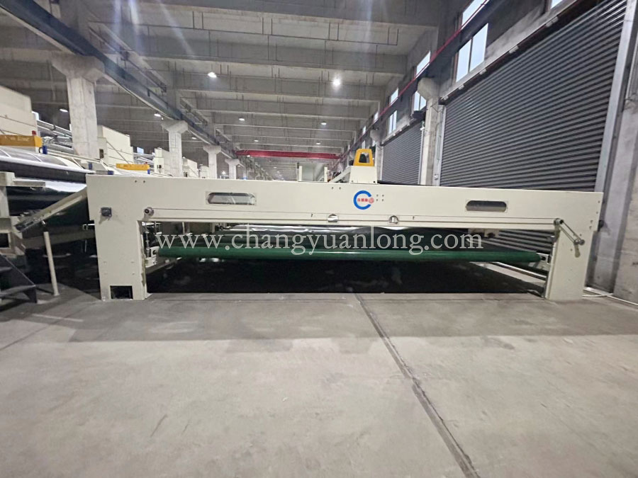 ✤工作原理:通過移動小車將棉網夾持前進鋪疊在底簾上,由底簾不斷地將一定厚度的棉網輸入到下一道工序。