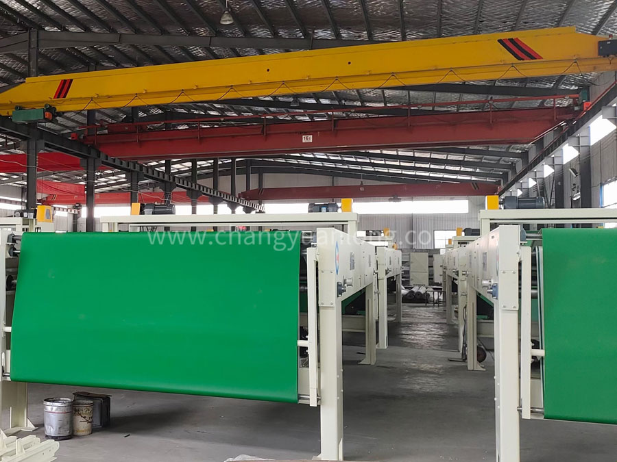 (2)鋪網機有輸入簾、儲存簾、落網簾、底簾、往複傳動機構,寬幅調節及提升機構等各部分組成,往複采用變頻控製。底簾為塑料簾,其餘為木簾。